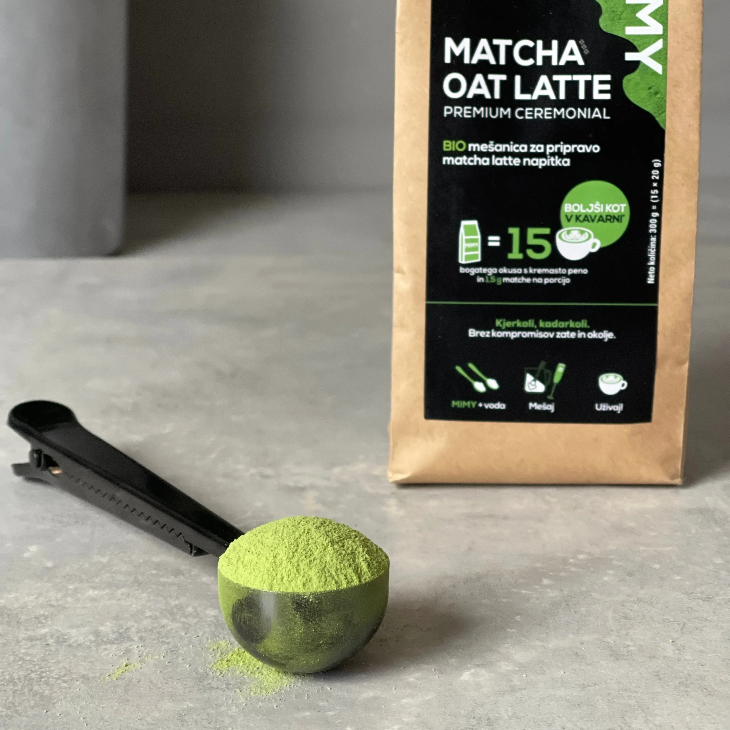 MIMY BIO Matcha Oat Latte je mešanica, ki jo zmešaš z vodo in dobiš bogat, kremast matcha latte v manj kot pol minute. Ne potrebuješ mleka iz tetrapaka, ne dodajanja arom ali sladkorja. Le najvišja kakovost sestavin za takojšnjo uporabo doma, v pisarni ali na poti.