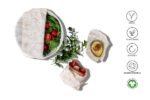 - Daljša svežina hrane: Naravne sestavine in organski bombaž omogočajo dihanje hrane, kar podaljša njeno svežino, medtem ko plastične vrečke pospešujejo propadanje.